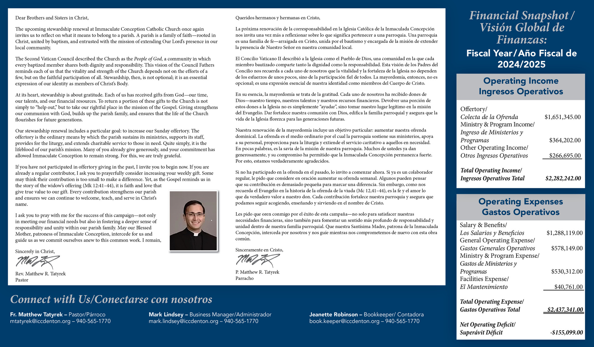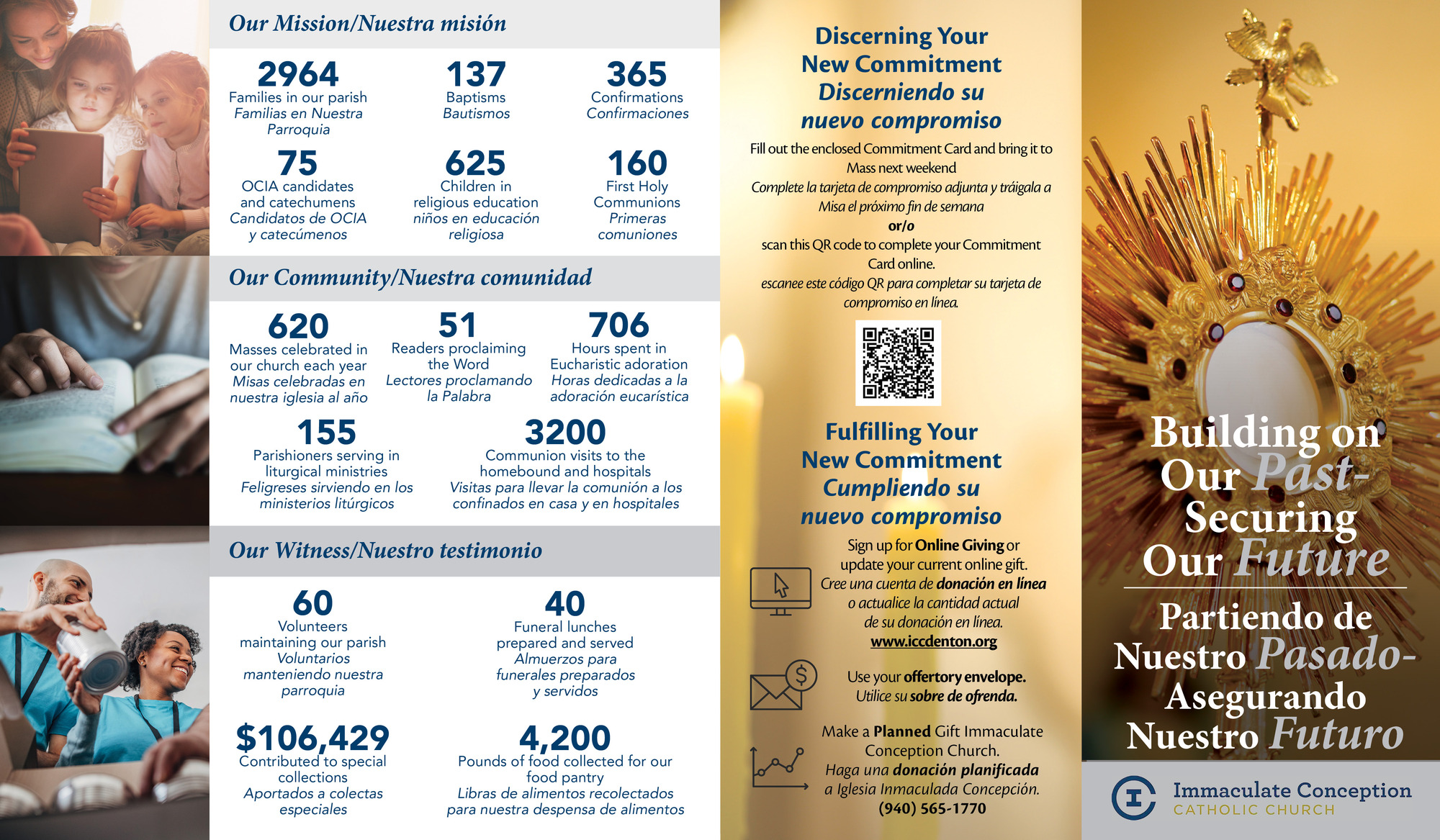 Over the next few weeks, you will be hearing about the upcoming “Building on Our Past - Securing Our Future” Program at Immaculate Conception Church. This effort is very important as we move forward with the mission and vision of Immaculate Conception Church. We, as a parish family, have changed so many lives in our community! In order to continue our mission and ministries, we encourage all parishioners to spend time in prayer and discussion with your family reflecting on the work we do. Our special Commitment Weekend will be celebrated on October 4 & 5. If you have any questions regarding the “Building on Our Past - Securing Our Future” Program, please feel free to contact the parish office.